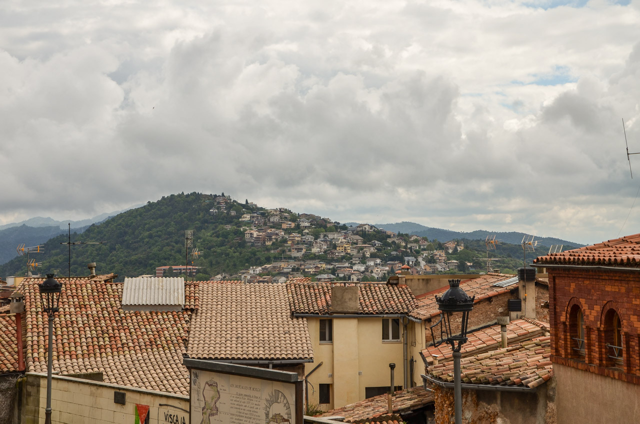 Ungefähr dreißig Kilometer vor Berga führt die Straße wieder in Richtung Berge, genau auf eine fast schwarze, riesige Wolkenwand zu. Sie beißt aber erstaunlicherweise nicht zu. Erst 5 Kilometer vor der Ankunft beginnt es zu tröpfeln und wir erreichen danach fast trocken die Auffahrt zum rettenden Hotel.